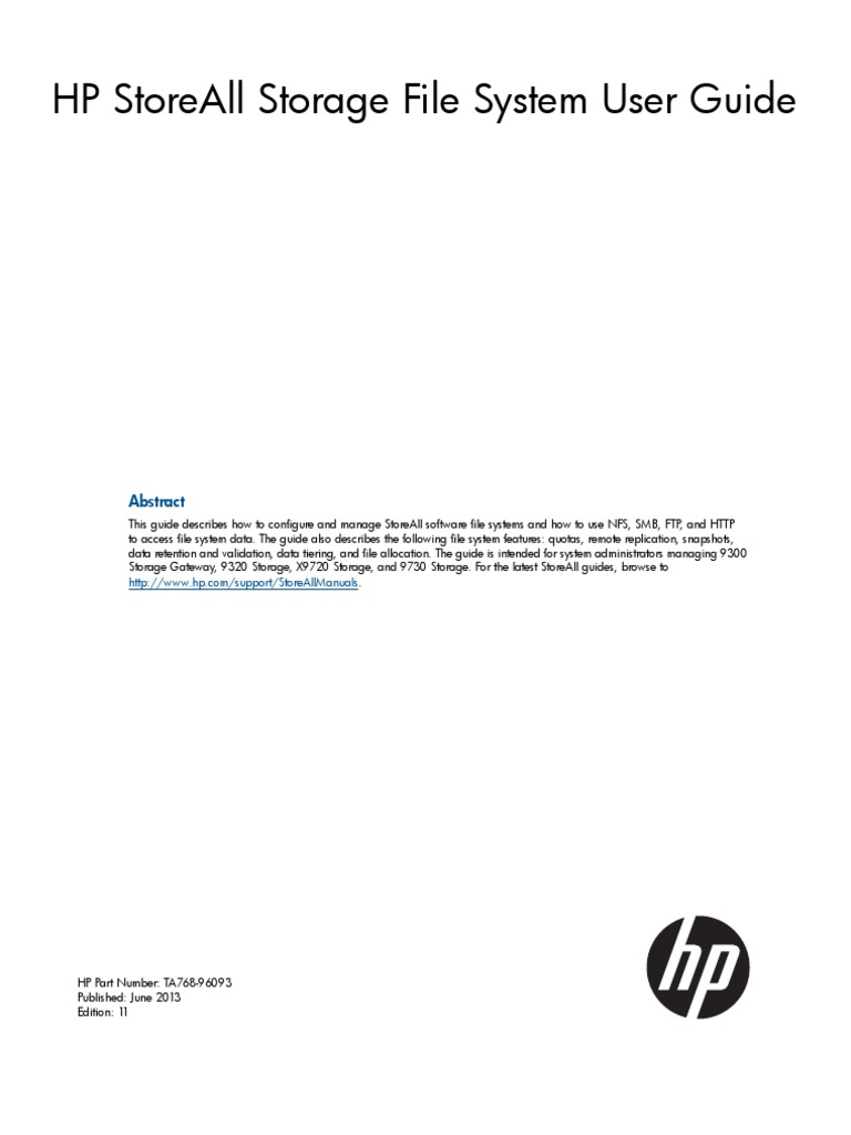 This guide describes how to configure and manage StoreAll software file systems and how to use NFS, SMB, FTP, and HTTP