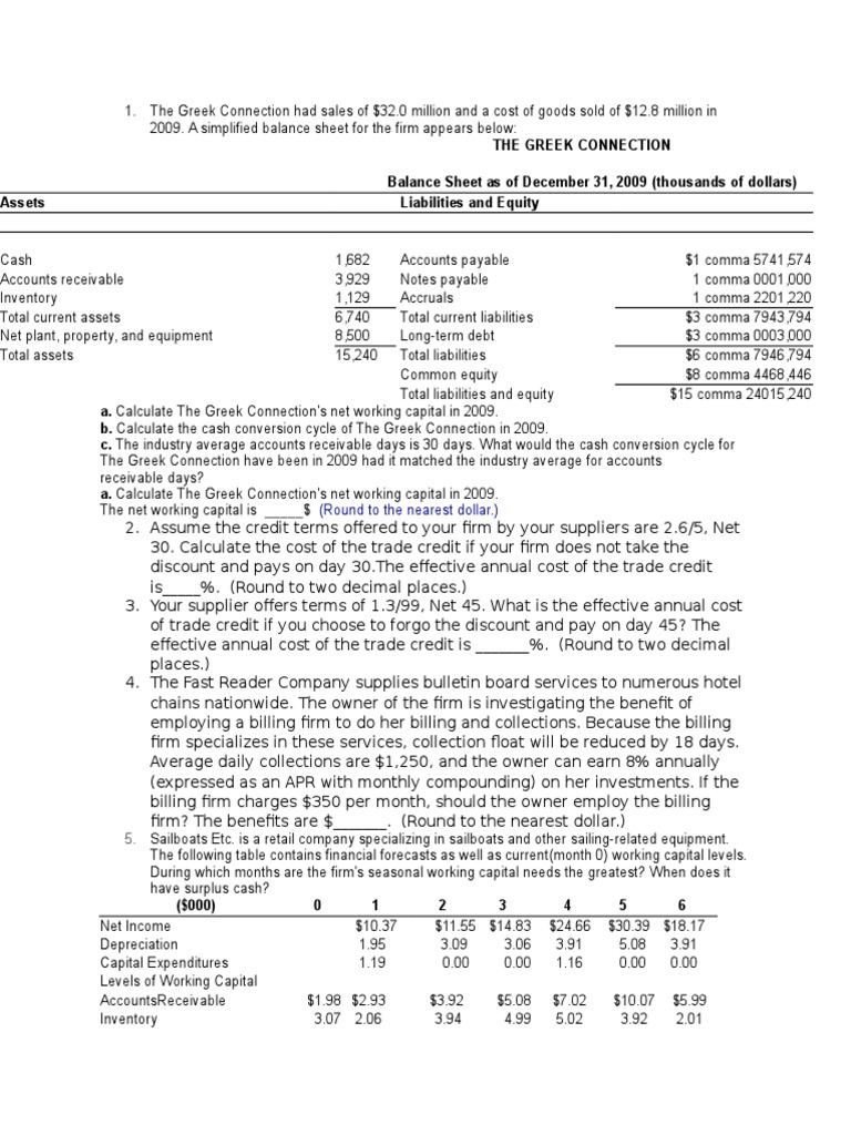 b. Calculate the cash conversion cycle of The Greek Connection in 2009.