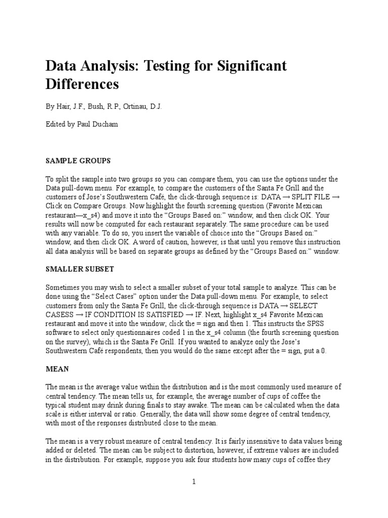the two restaurant competitors Santa Fe Grill and Joses Southwestern Caf. But ANOVA can be