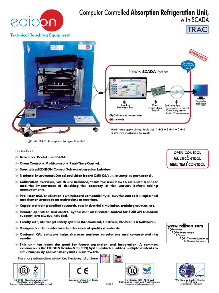 As a result, by using the TRAC unit, students will familiarize with each of the individual components of an absorption refrigeration unit (freezing and