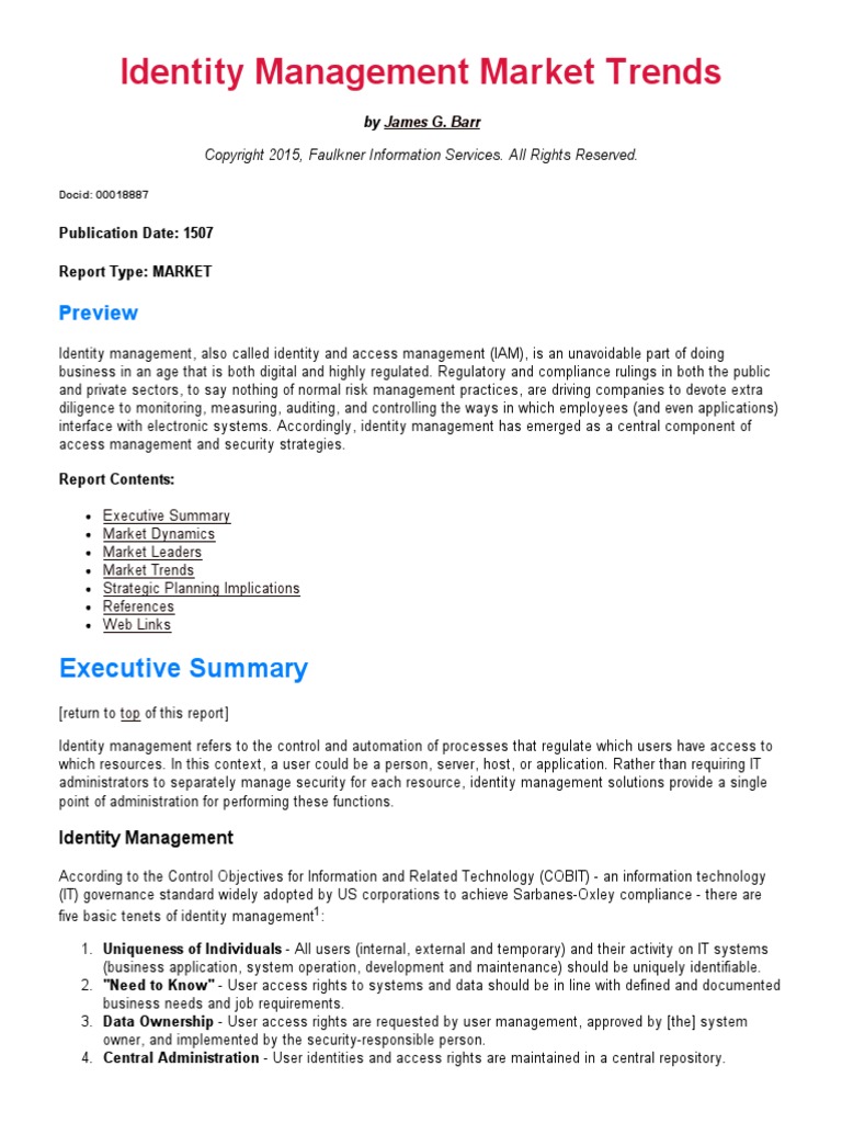 "Global Identity and Access Management (IAM) Market 2015-2019." Infiniti Research Limited. February 2015.