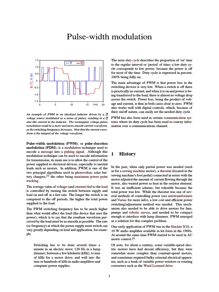Pulse-width modulation Source: https://en.wikipedia.org/wiki/Pulse-width_modulation?oldid=735450992 Contributors: Damian Yerrick, PierreAbbat, SimonP, Heron, Lumpbucket, Michael Hardy, Tim Starling, Ixfd64, Glenn, GRAHAMUK, Selket, EpiVictor, Pingveno,
