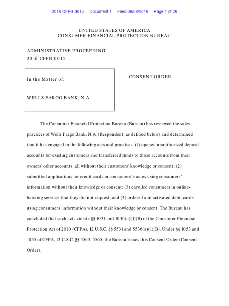 practices of Wells Fargo Bank, N.A. (Respondent, as defined below) and determined