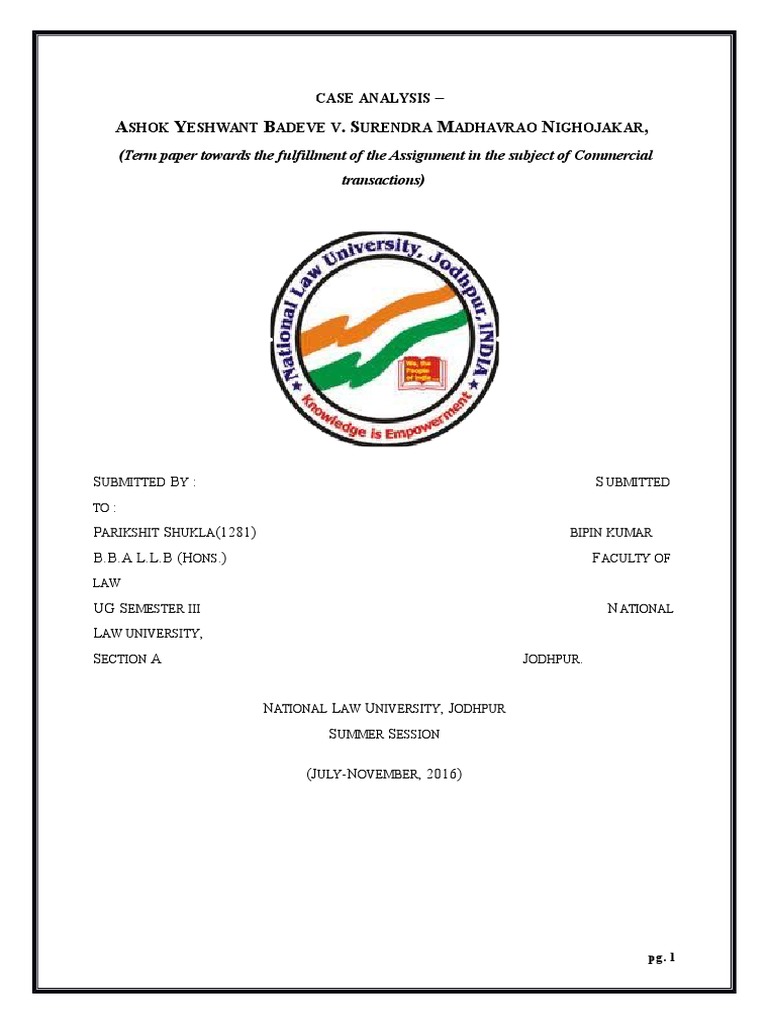 (Term paper towards the fulfillment of the Assignment in the subject of Commercial