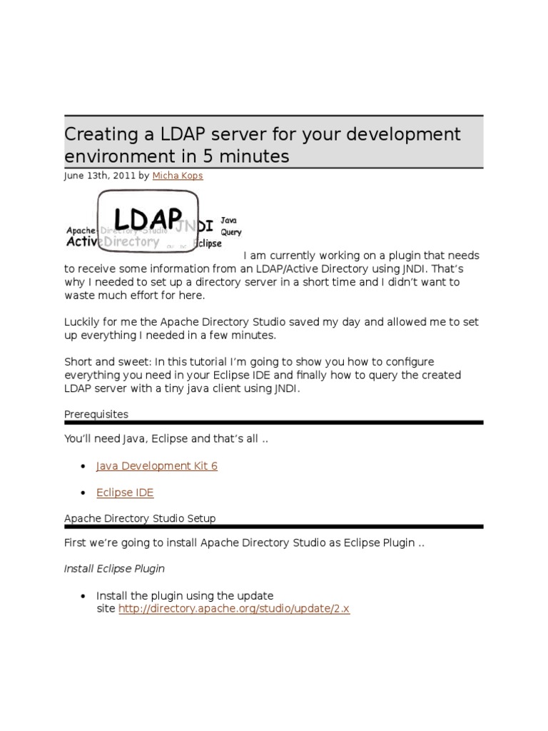 Creating a new LDAP server in Eclipse IDE