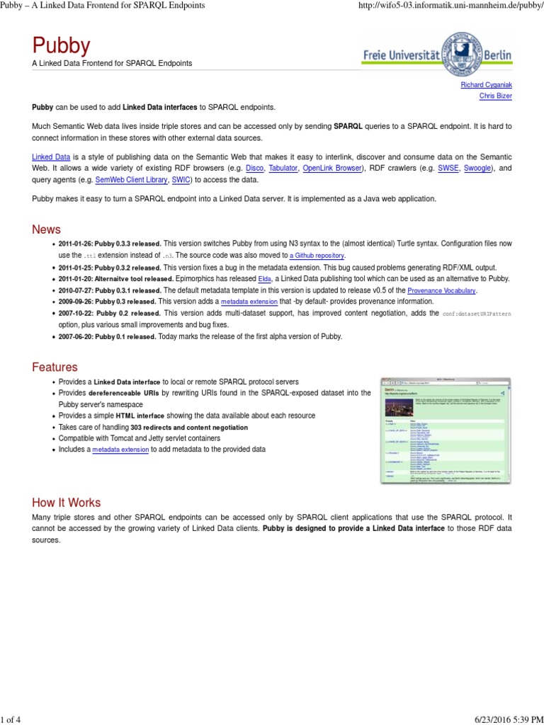 2011-01-26: Pubby 0.3.3 released. This version switches Pubby from using N3 syntax to the (almost identical) Turtle syntax. Configuration files now