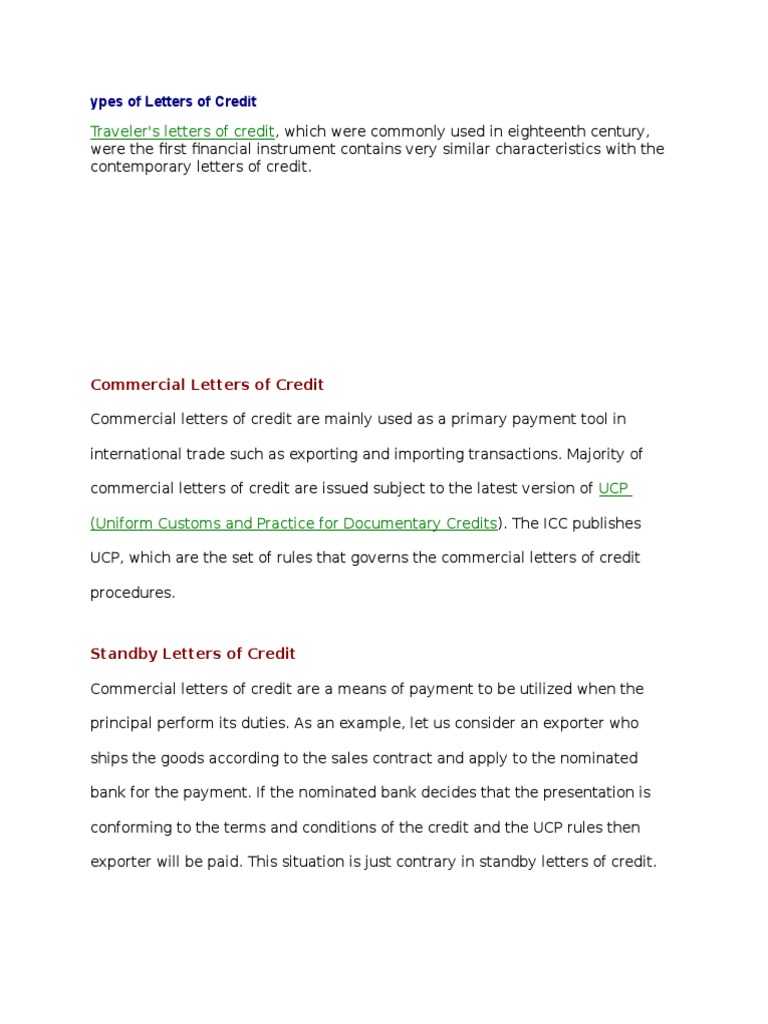 used in traveler's letters of credit. Today direct pay standby letter of credit can