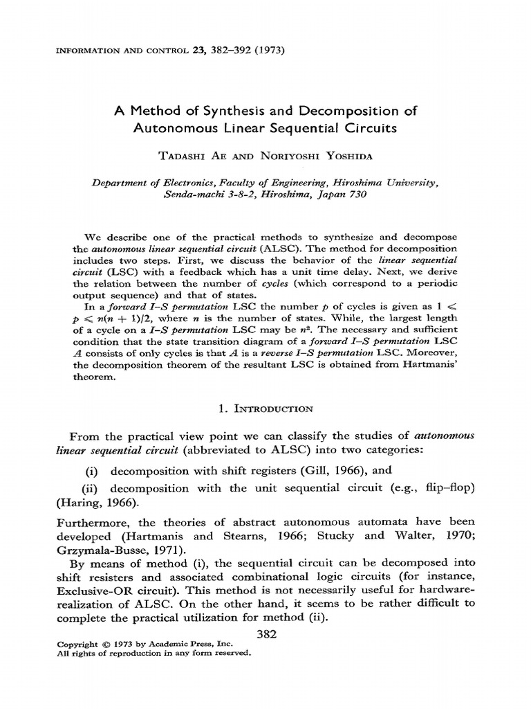 AE, T., NAGAMI,H., AND YOSHIDA, N., IECE of Japan Trans. (D) (short note), to