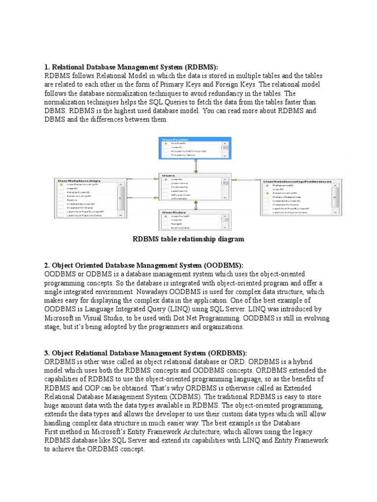 model which uses both the RDBMS concepts and OODBMS concepts. ORDBMS extended the