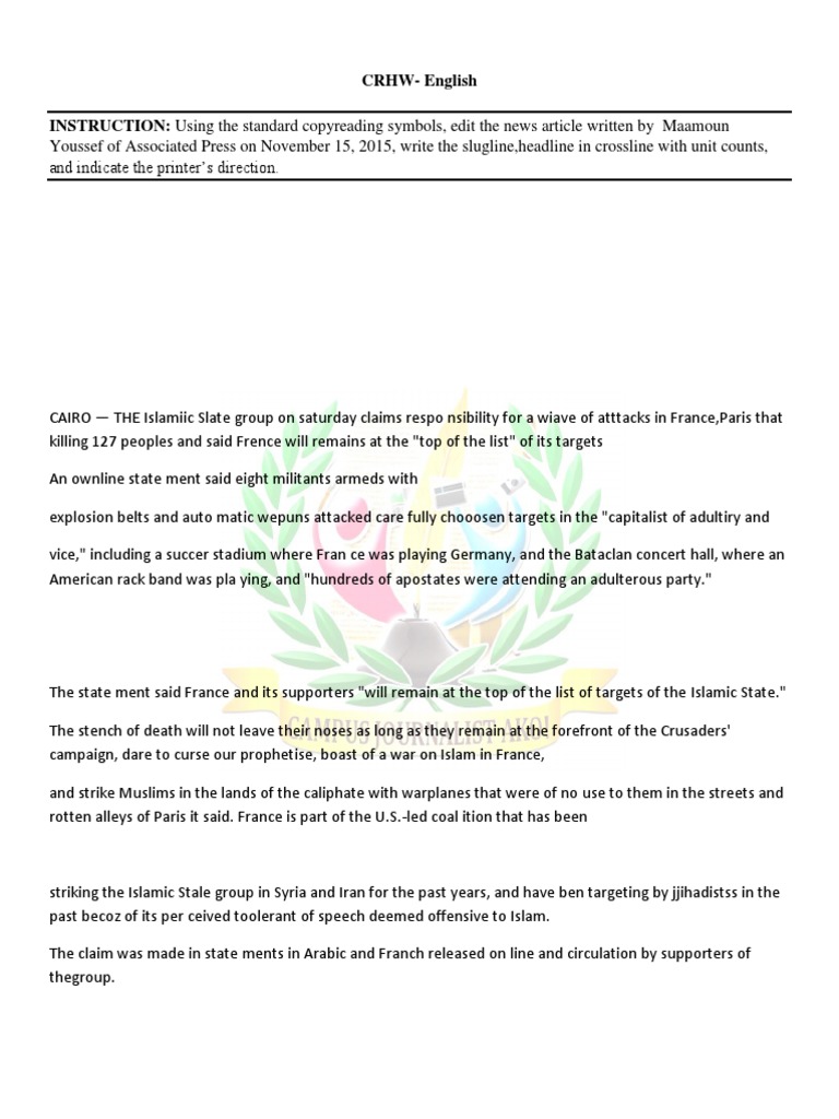 INSTRUCTION: Using the standard copyreading symbols, edit the news article written by Maamoun