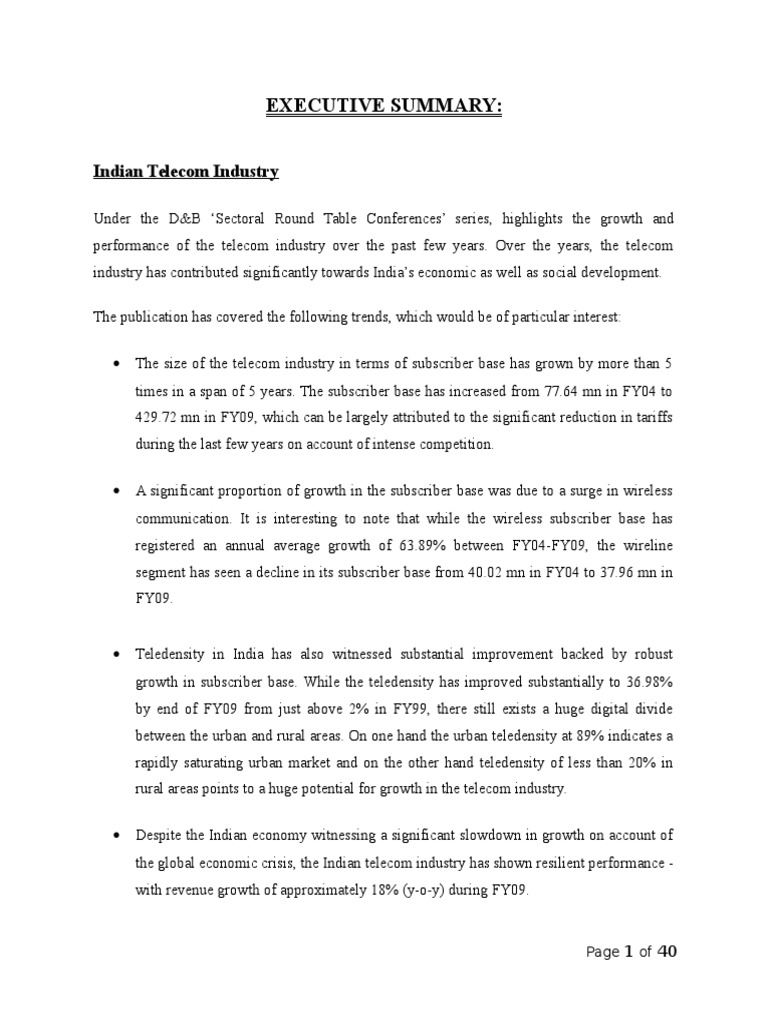 industry in India. As a result, the Indian telecom market is one of the most liberalised market in
