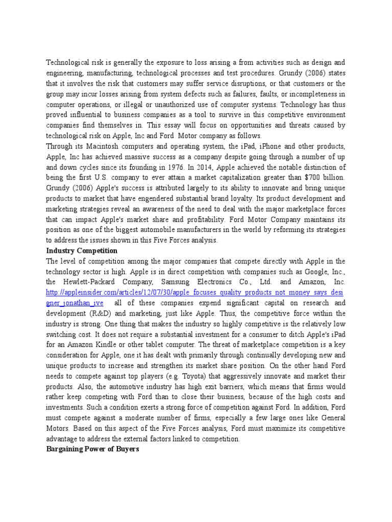 technological risk on Apple, Inc and Ford Motor company as follows.