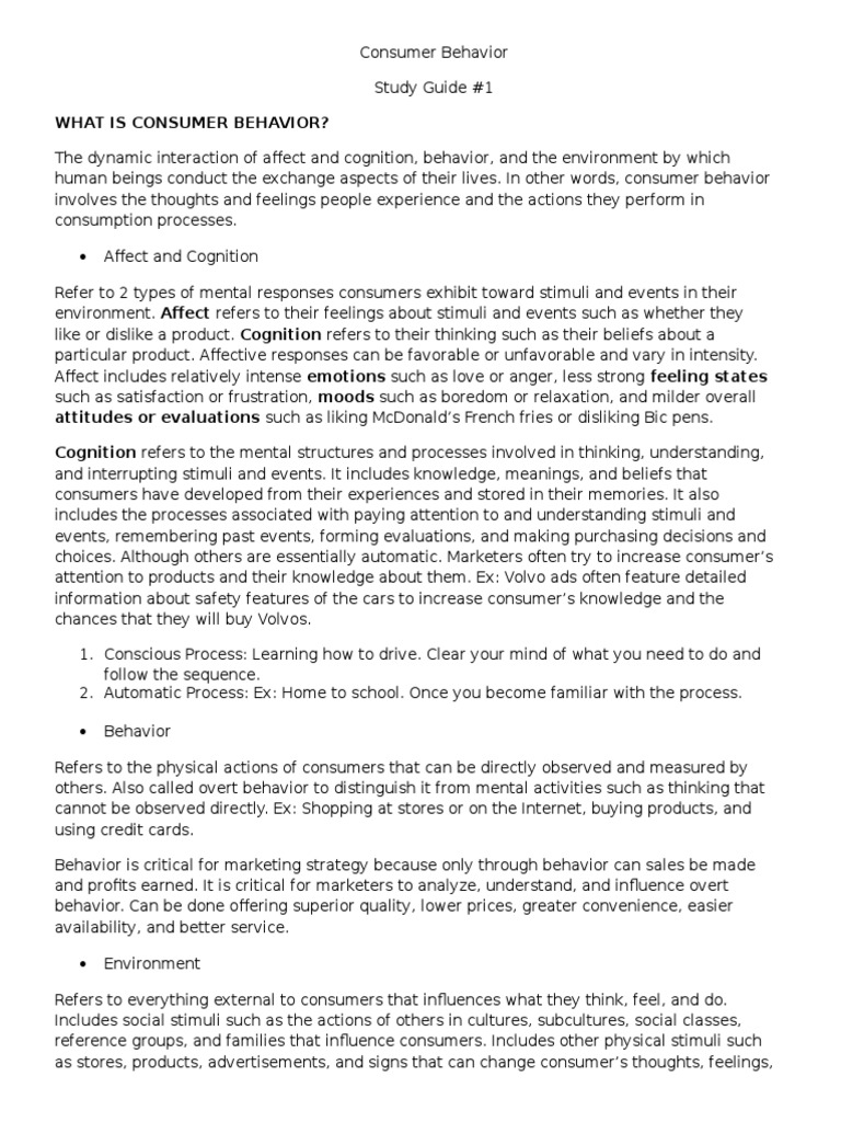 consumers affect , cognition, and environments. Environments can change consumers affect,