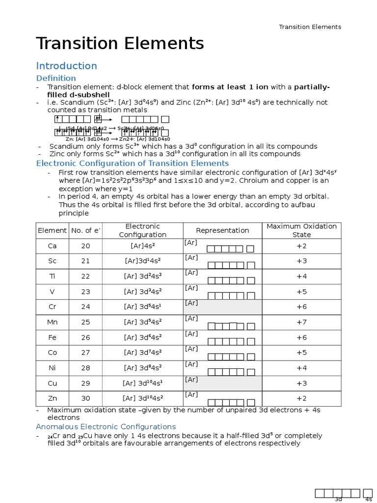 Transition element: d-block element that forms at least 1 ion with a partiallyfilled d-subshell