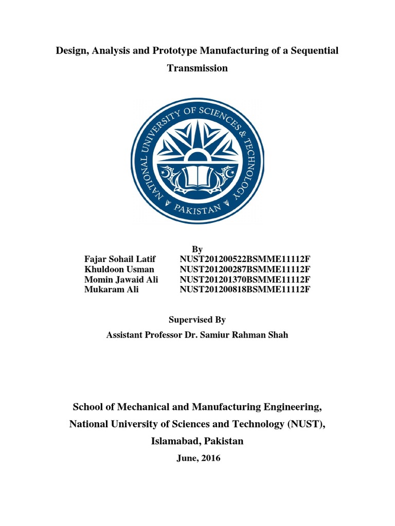 author and lodged in the Library of SMME, NUST. Details may be obtained by the