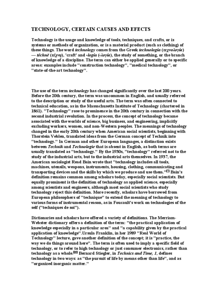 TECHNOLOGY, CERTAIN CAUSES AND EFECTS