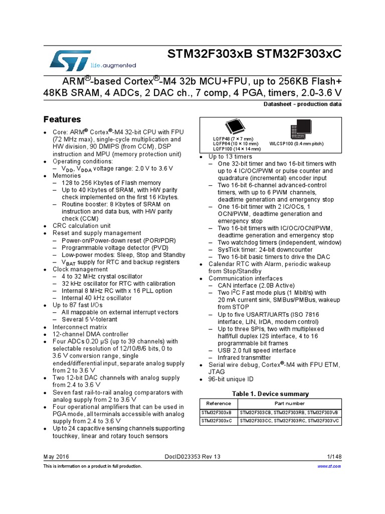 STM32F303xB STM32F303xC Datasheet - Production Data