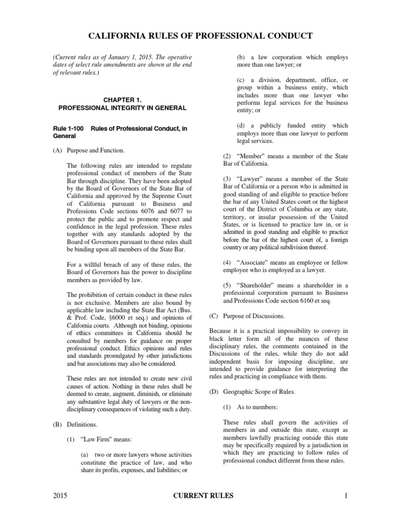 CALIFORNIA RULES OF PROFESSIONAL CONDUCT