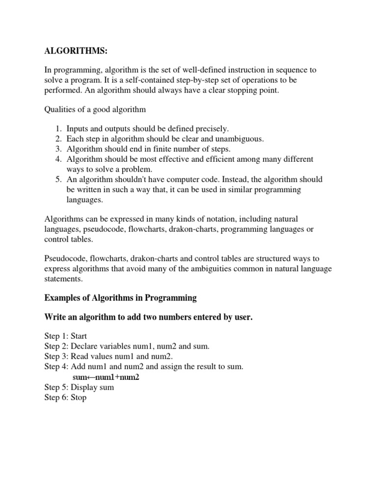 In programming, algorithm is the set of well-defined instruction in sequence to