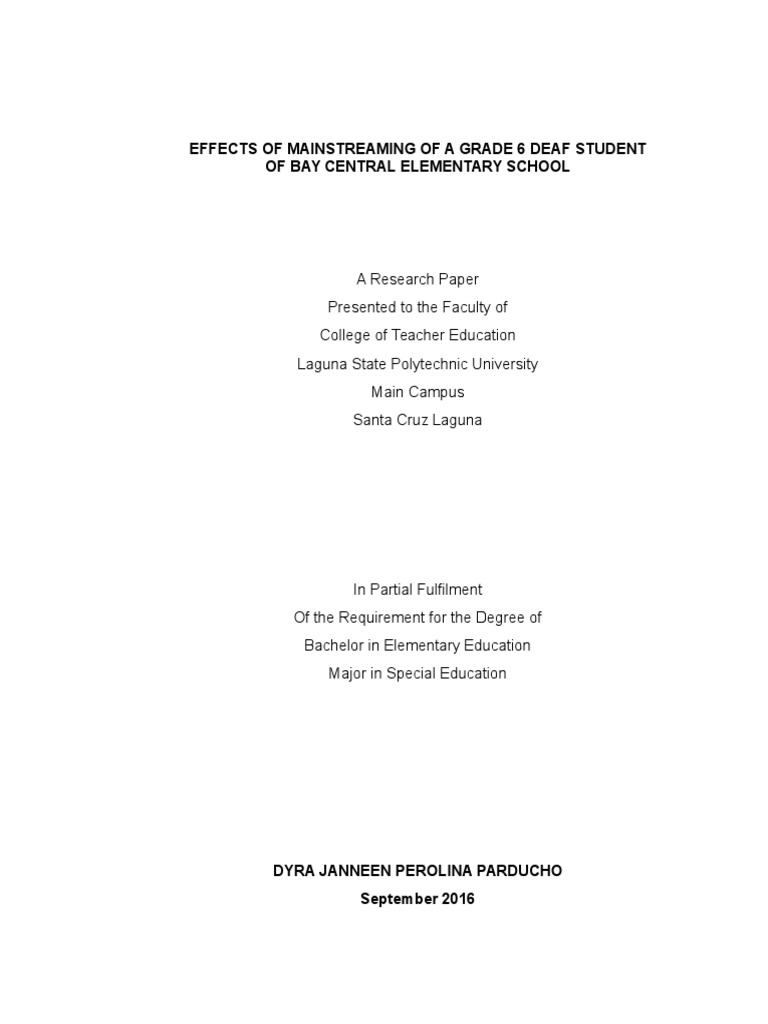 EFFECTS OF MAINSTREAMING OF A GRADE 6 DEAF STUDENT