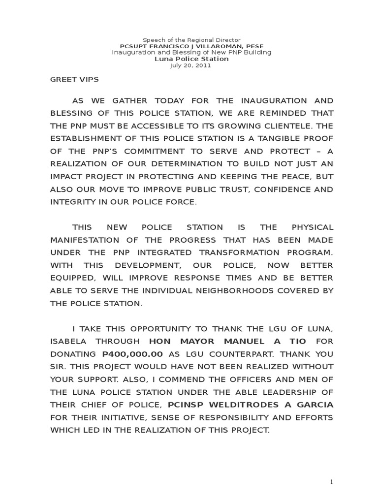 THE LUNA POLICE STATION UNDER THE ABLE LEADERSHIP OF