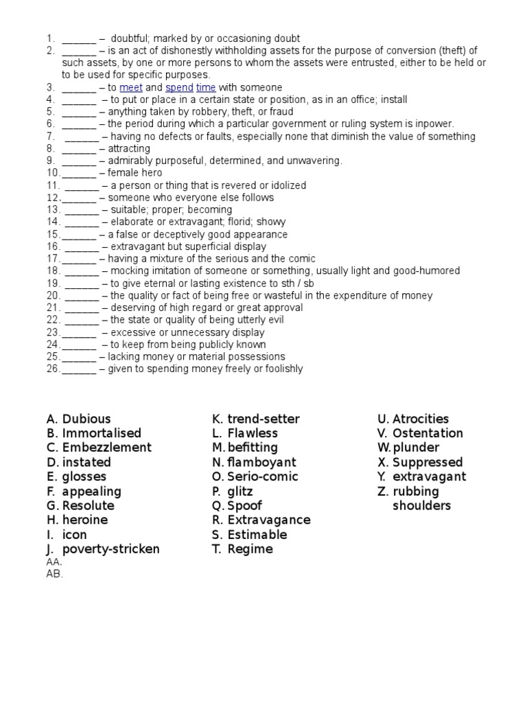 20. ______ the quality or fact of being free or wasteful in the expenditure of money