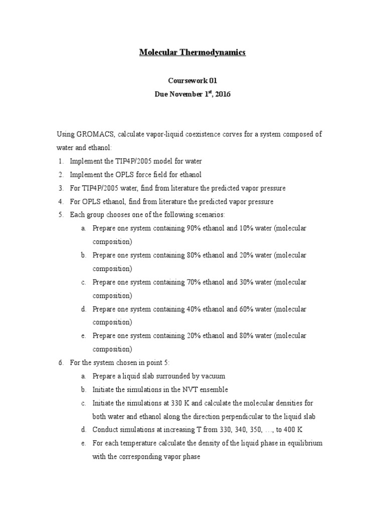 Using GROMACS, calculate vapor-liquid coexistence corves for a system composed of