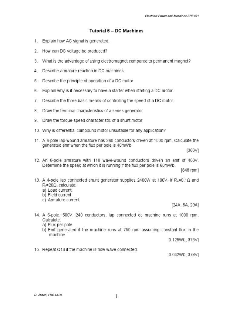 11. A 6-pole lap-wound armature has 360 conductors driven at 1500 rpm. Calculate the