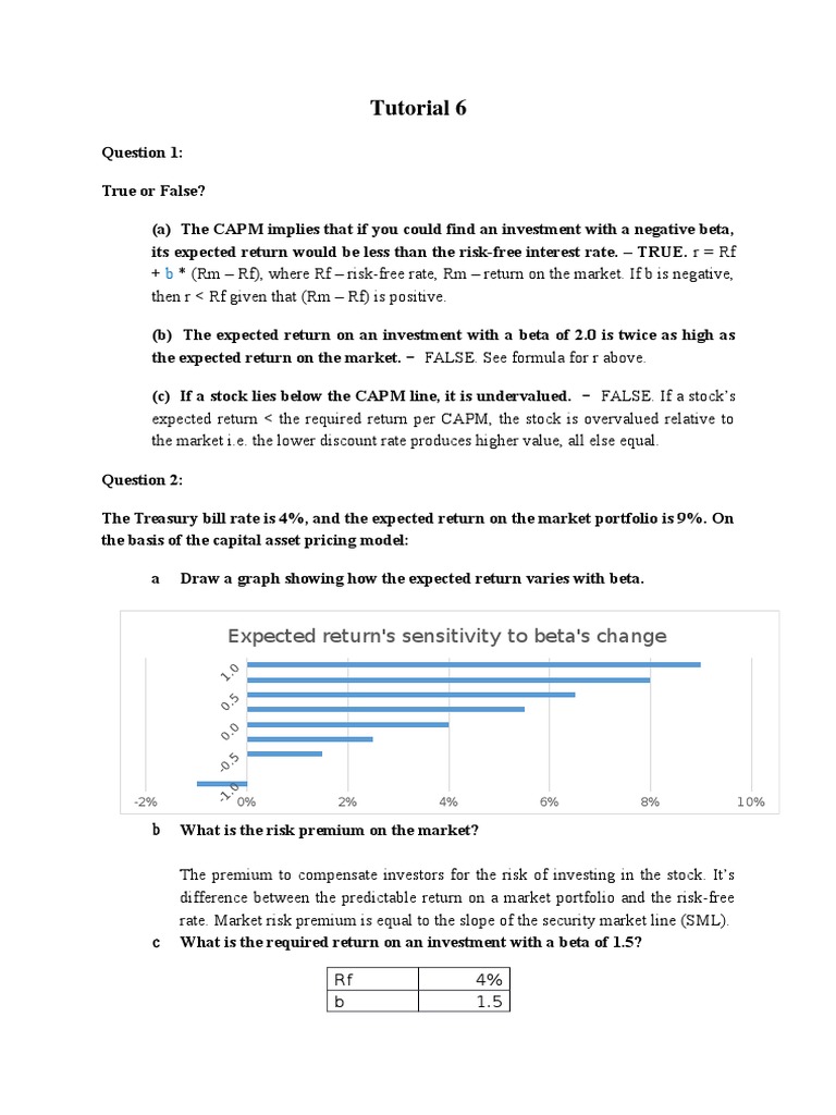 (c) If a stock lies below the CAPM line, it is undervalued. - FALSE. If a stocks
