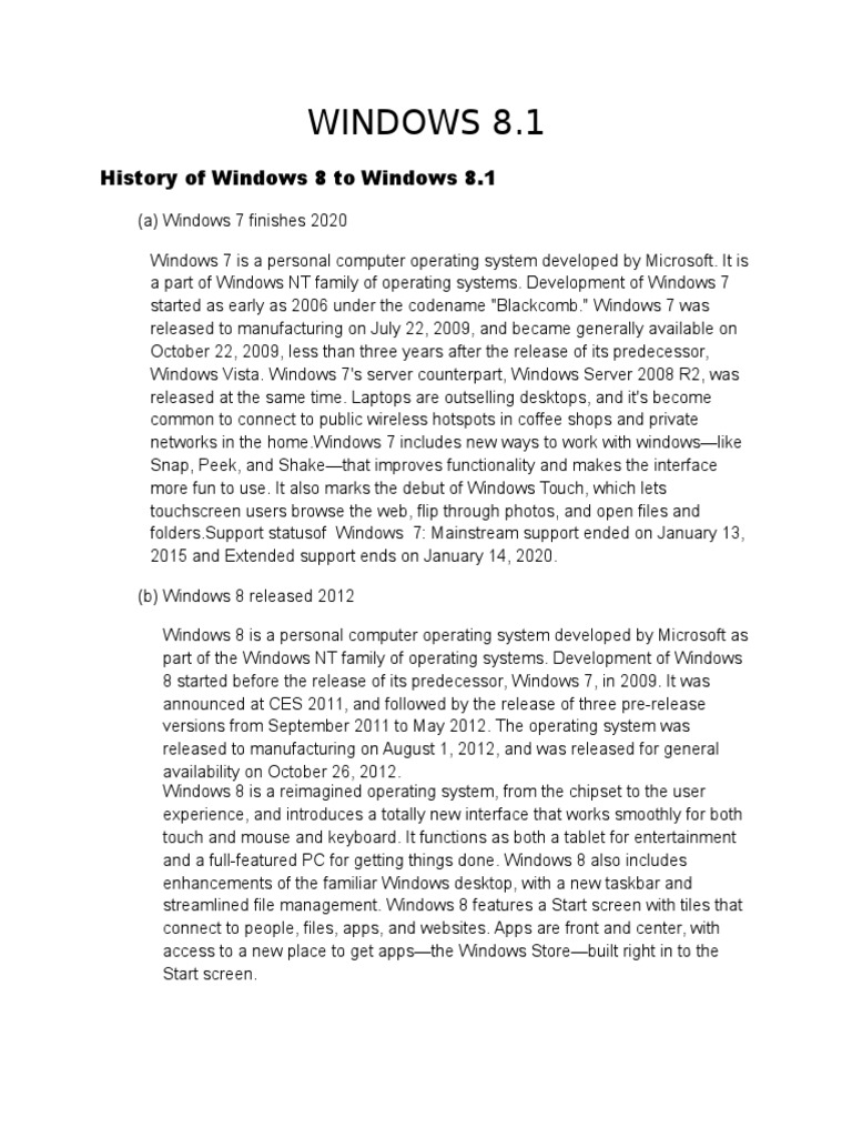 History of Windows 8 to Windows 8.1