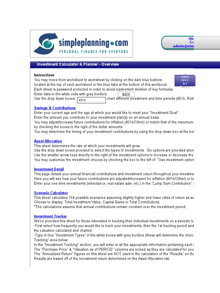 Simpleplanning.com will not be held liable for damages in the event of, but not limited to inaccurate assumptions, calc