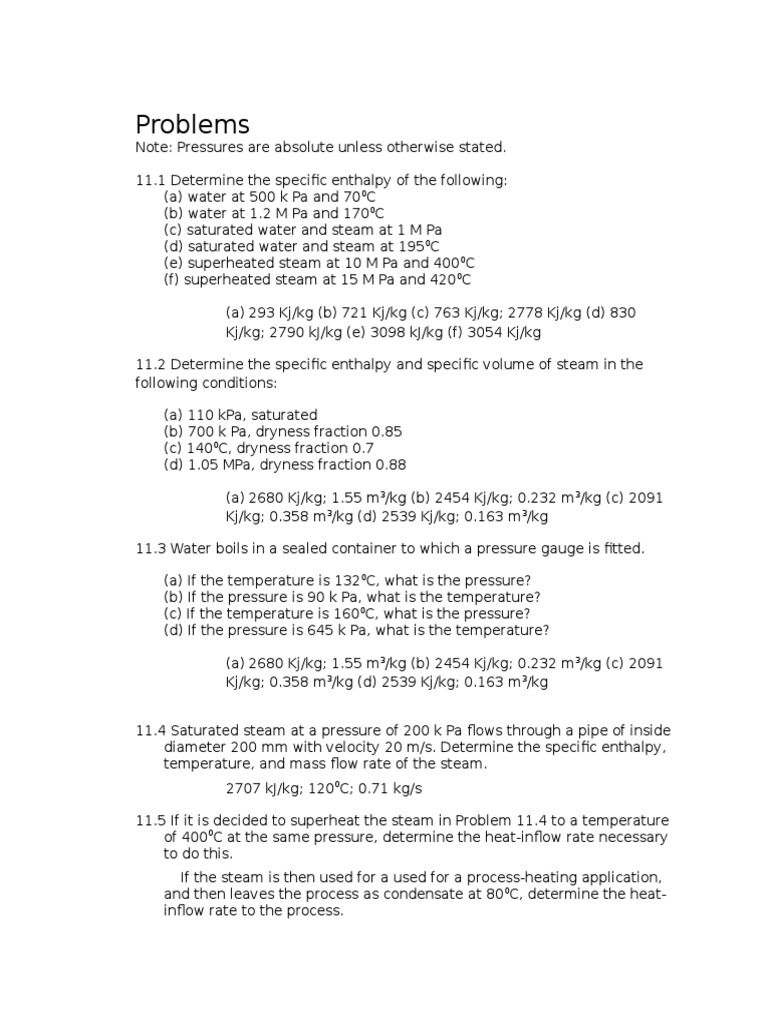 11.7 Saturated steam at 400 k Pa (gauge) is to be used to provide heat in an