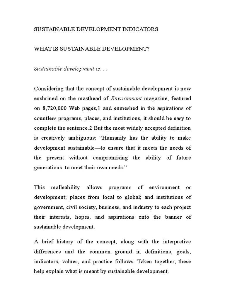 SUSTAINABLE DEVELOPMENT INDICATORS