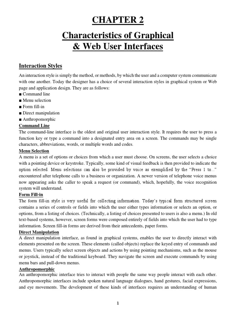 with one another. Today the designer has a choice of several interaction styles in graphical system or Web