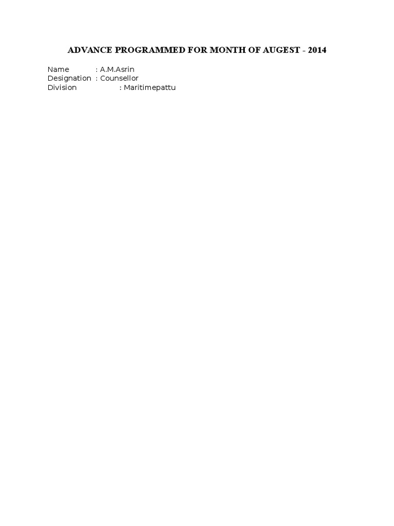 ADVANCE PROGRAMMED FOR MONTH OF AUGEST - 2014