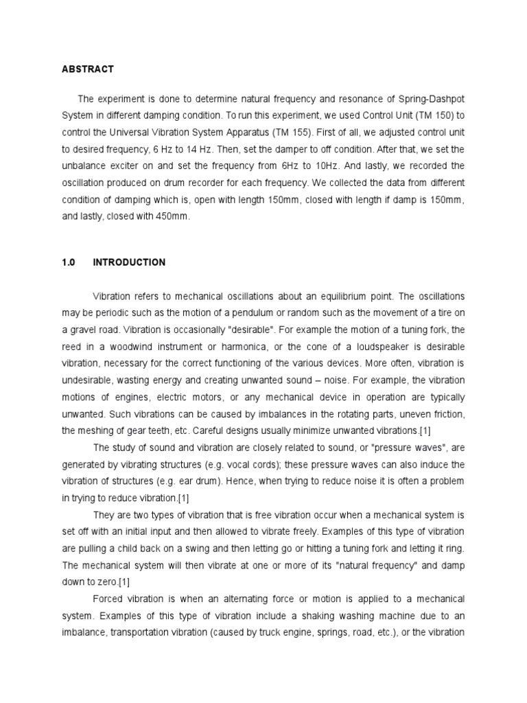 The experiment is done to determine natural frequency and resonance of Spring-Dashpot