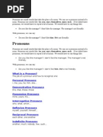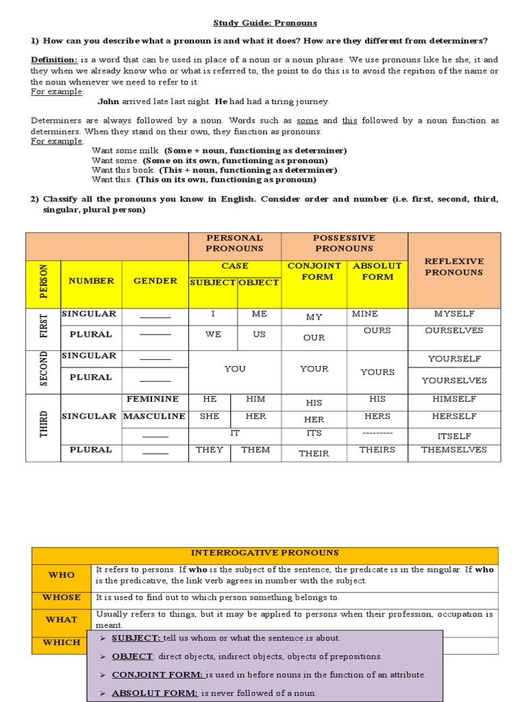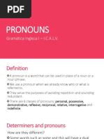 1) How can you describe what a pronoun is and what it does? How are they different from determiners?