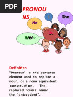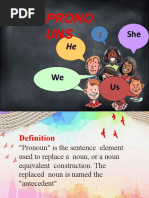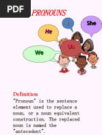 Definition: is a word that can be used in place of a noun or a noun phrase. We use pronouns like he she, it and