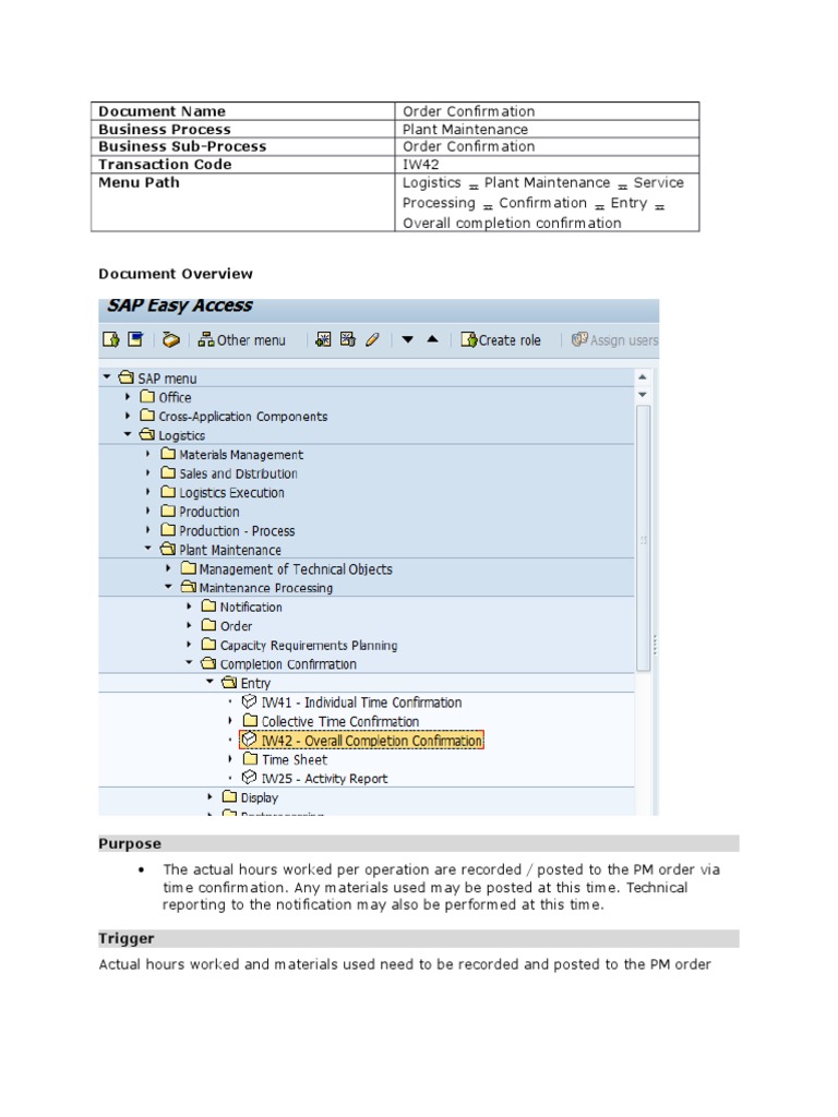 A) Enter PM Order Confirmation-IW42