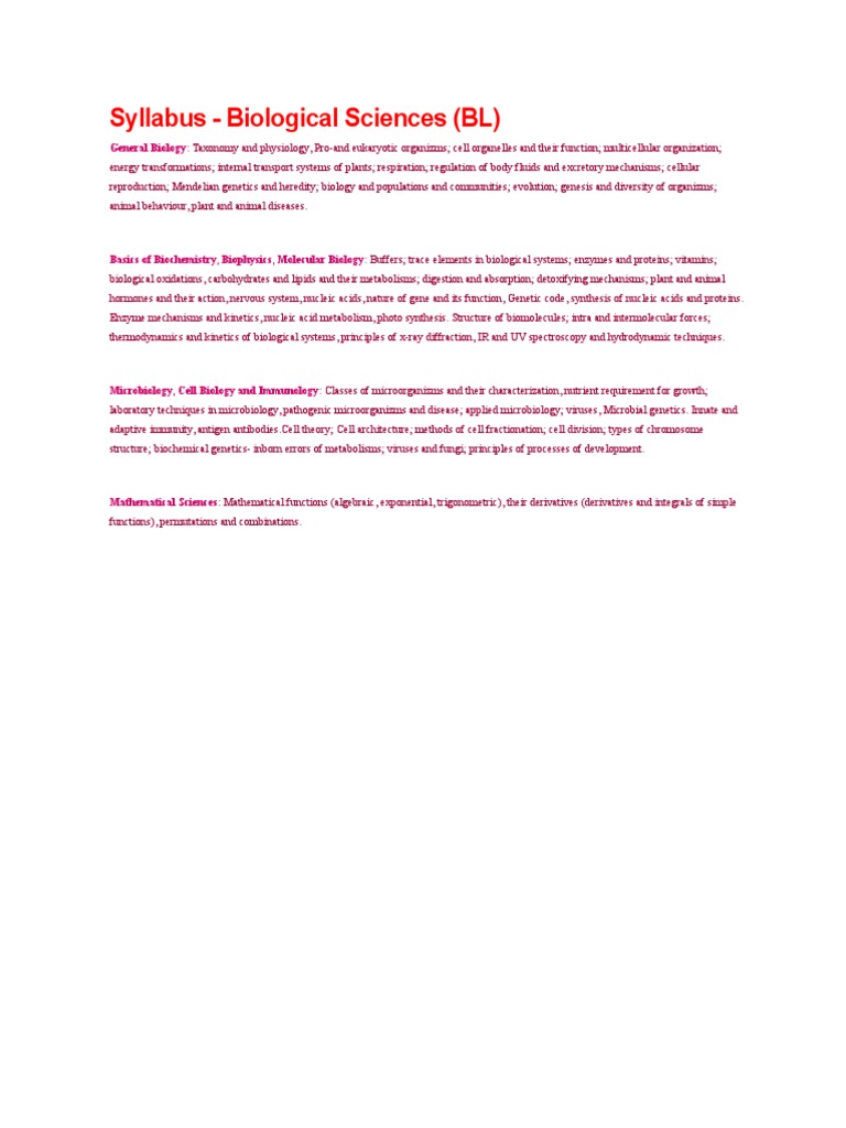 Syllabus - Biological Sciences (BL)