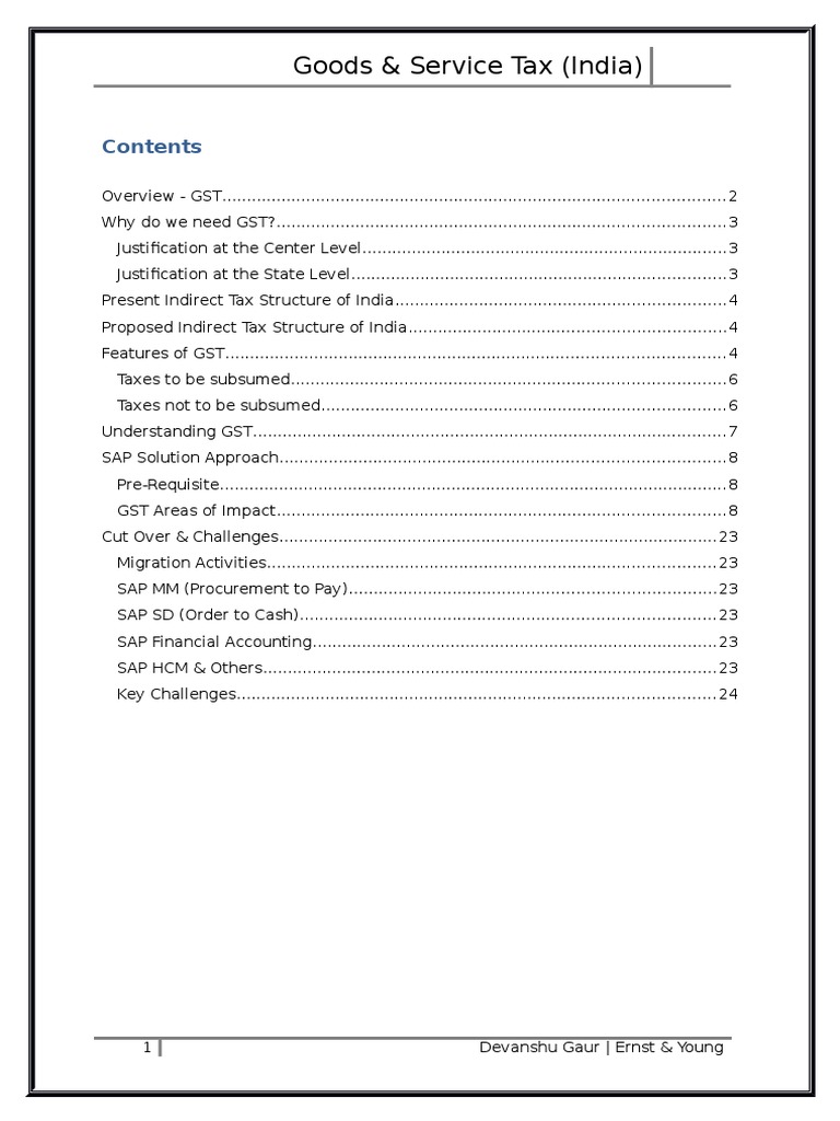Goods and Services Tax" would be a comprehensive indirect tax on