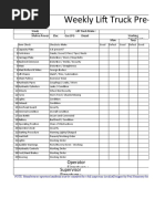 RT Forklift Pre-Operational Inspection Checklist Truck #: _________________