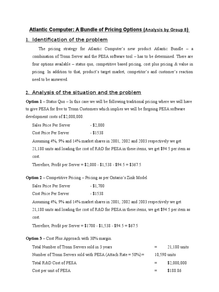 Atlantic Computer: A Bundle of Pricing Options ( Analysis by Group 8)