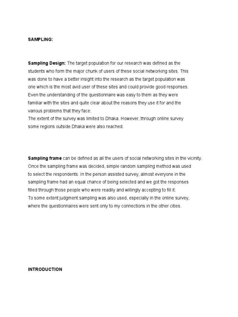Sampling frame can be defined as all the users of social networking sites in the vicinity.