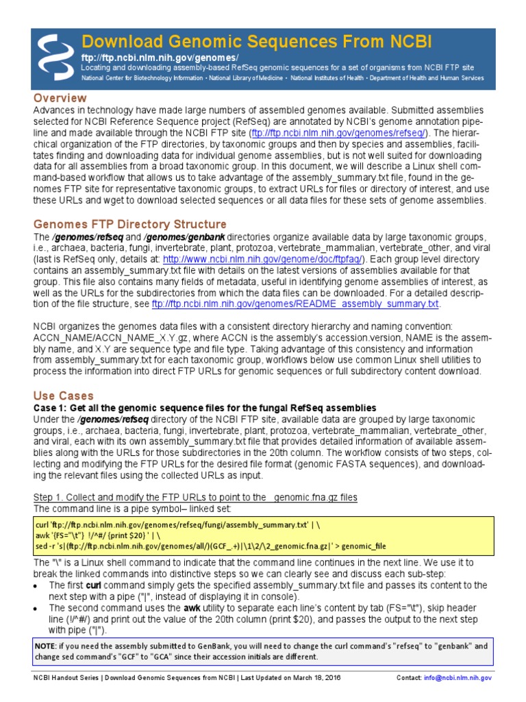 NCBI Handout Series | Download Genomic Sequences from NCBI | Last Updated on March 18, 2016