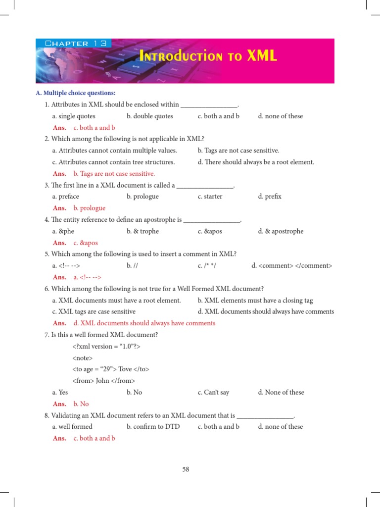 Ans. The two parts of an XML document are XML Tree and DTD.