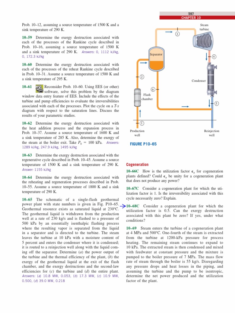 it is routed to a reinjection well along with the liquid coming off the separator. Determine (a) the power output of