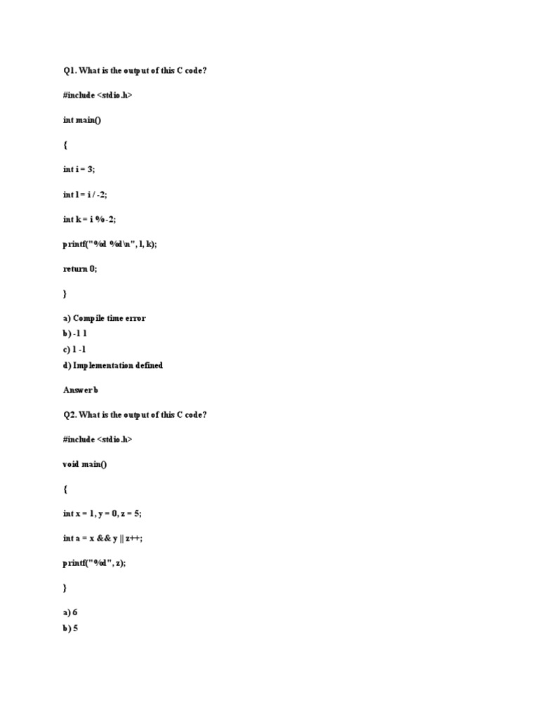 Q87. In turbo C (size of int =2 bytes) what will be the output of the following