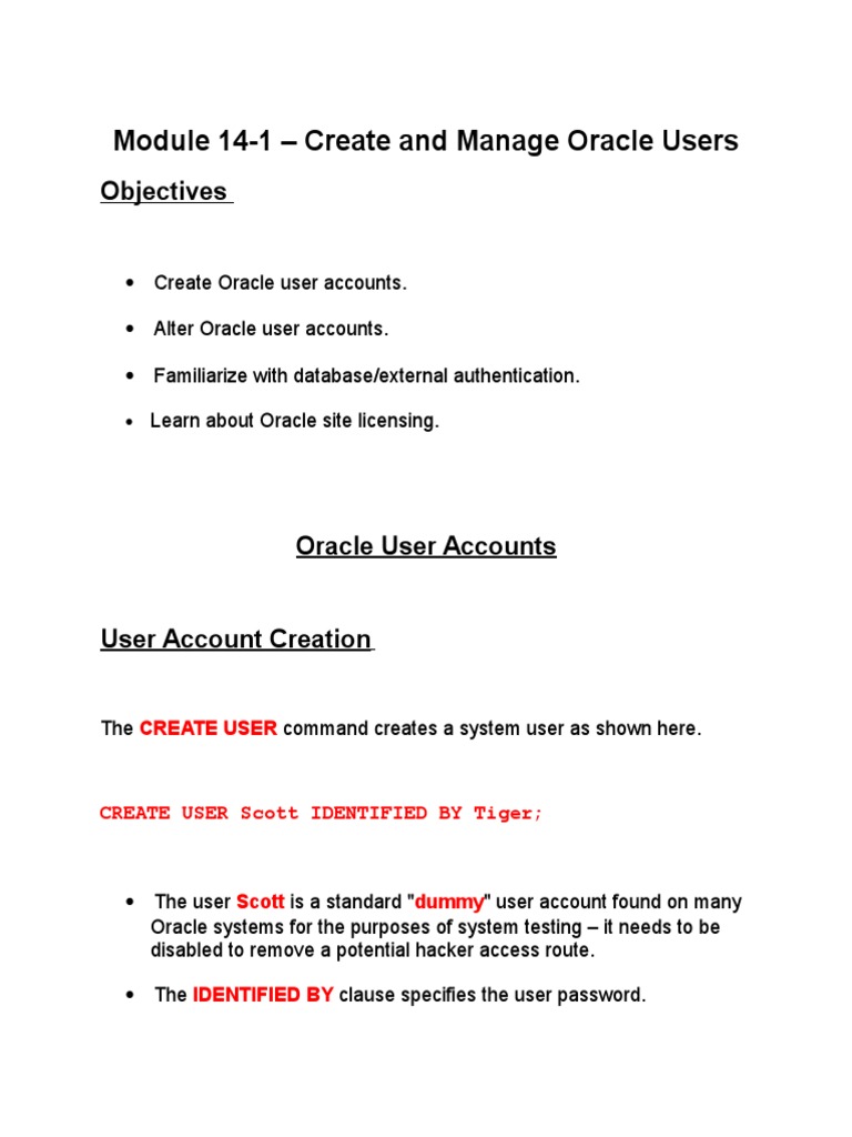 CREATE USER Scott IDENTIFIED BY Tiger;