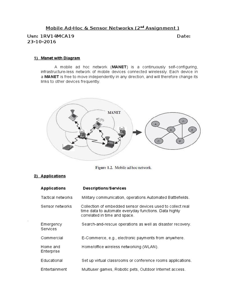 A mobile ad hoc network (MANET) is a continuously self-configuring,